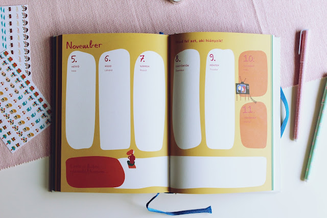A színes, gyerekrajzokra hasonlító illusztrációkkal nagyon szerethető és emberi lesz az egész napló. Ez nem egy mostanában divatosnak számító letisztult, fancy naptár, de igazából nem is ez a célja. Nincsenek benne szabályos négyzetek és vonalak, viszont van annál több szín és vidámság, amitől olyan igazi naplószerűvé válik az egész. Ezzel is megerősítve azt, hogy nem kell mindig a tökéletesre törekedni.